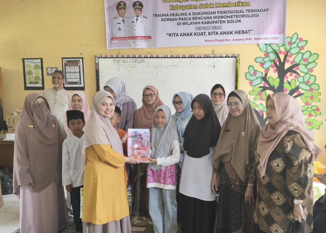 Solok, lintastiga.com – Dalam rangka memperingati Hari Ibu ke-97 tahun 2025, Gabungan Organisasi Wanita (GOW) Kabupaten Solok menggelar kegiatan Trauma Healing dan dukungan psikososial bagi anak-anak terdampak bencana hidrometeorologi di Nagari Muaro Pingai, Kecamatan Junjung Sirih. Kegiatan bertema “Kita Anak Kuat, Kita Anak Hebat” itu dipusatkan di SDN 08 Muaro Pingai, diikuti oleh dua sekolah: SDN 08 dan SDN 01 Nagari Muaro Pingai.