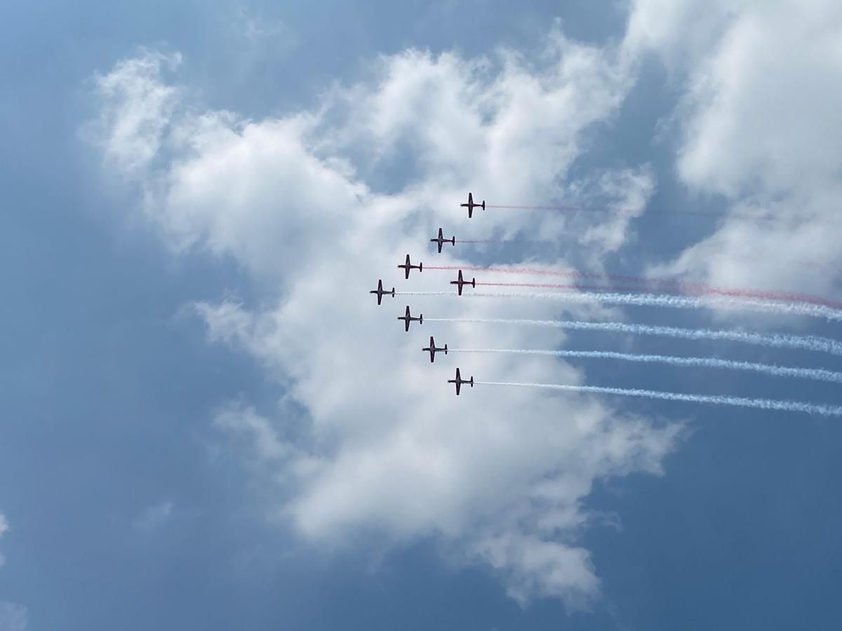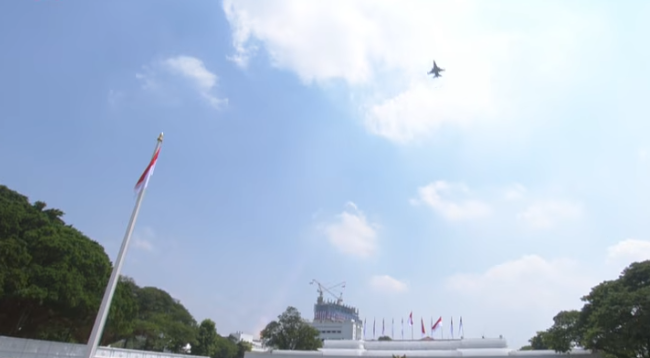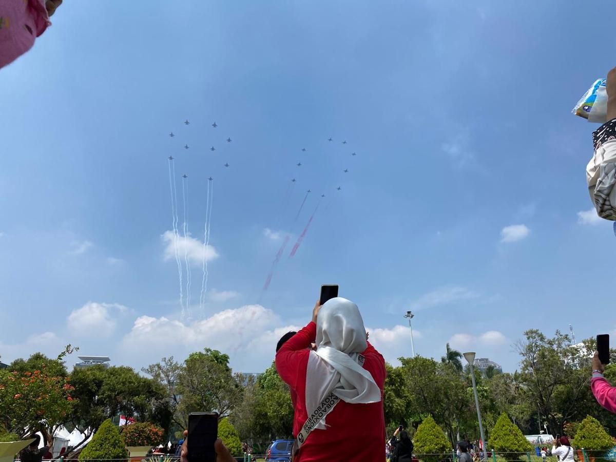 Berikut gambaran penerbangan pesawat di langit Istana Merdeka saat perayaan ulang tahun ke-80 Republik Indonesia.