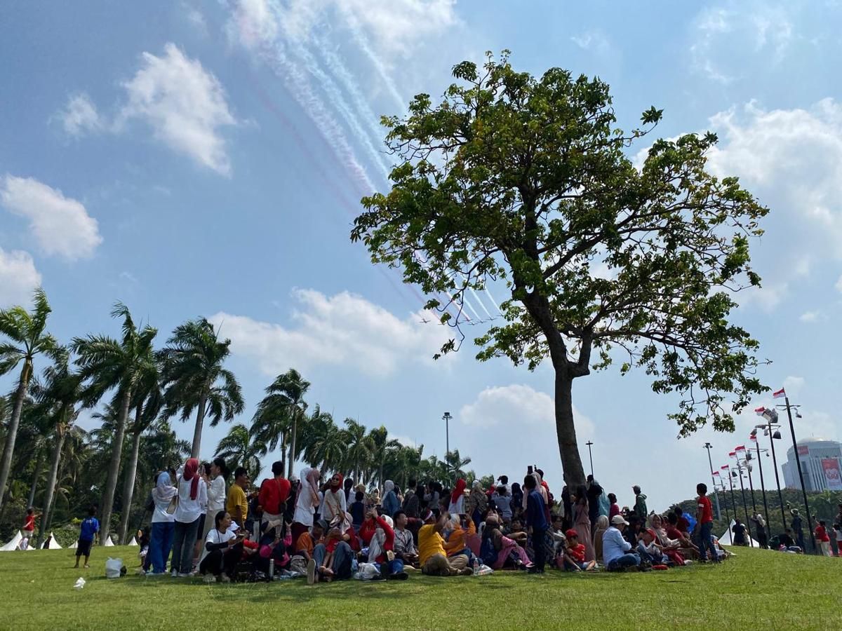 3. Pertunjukan pesawat menjadi salah satu hiburan yang disukai oleh penduduk setempat saat menghadiri perayaan Hari Ulang Tahun Republik Indonesia di Istana Negara dan Monas.