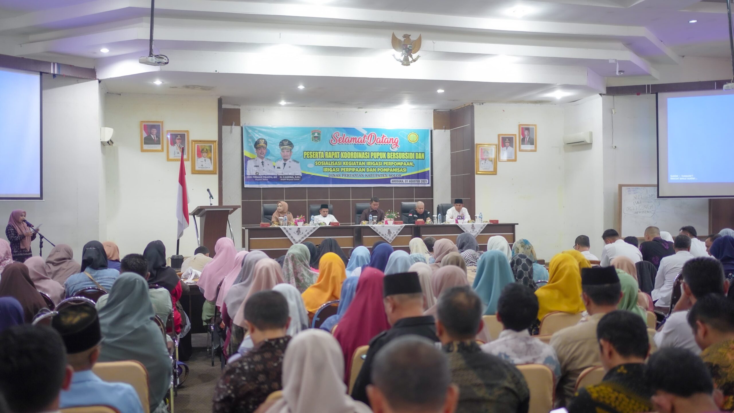 Arosuka – lintastiga.com. Bupati Solok Jon Firman Pandu, secara resmi membuka Rapat Koordinasi Pupuk Bersubsidi dan Sosialisasi Kegiatan Irigasi Perpompaan, Jum’at (01/08/2025) di Gedung Solok Nan Indah.