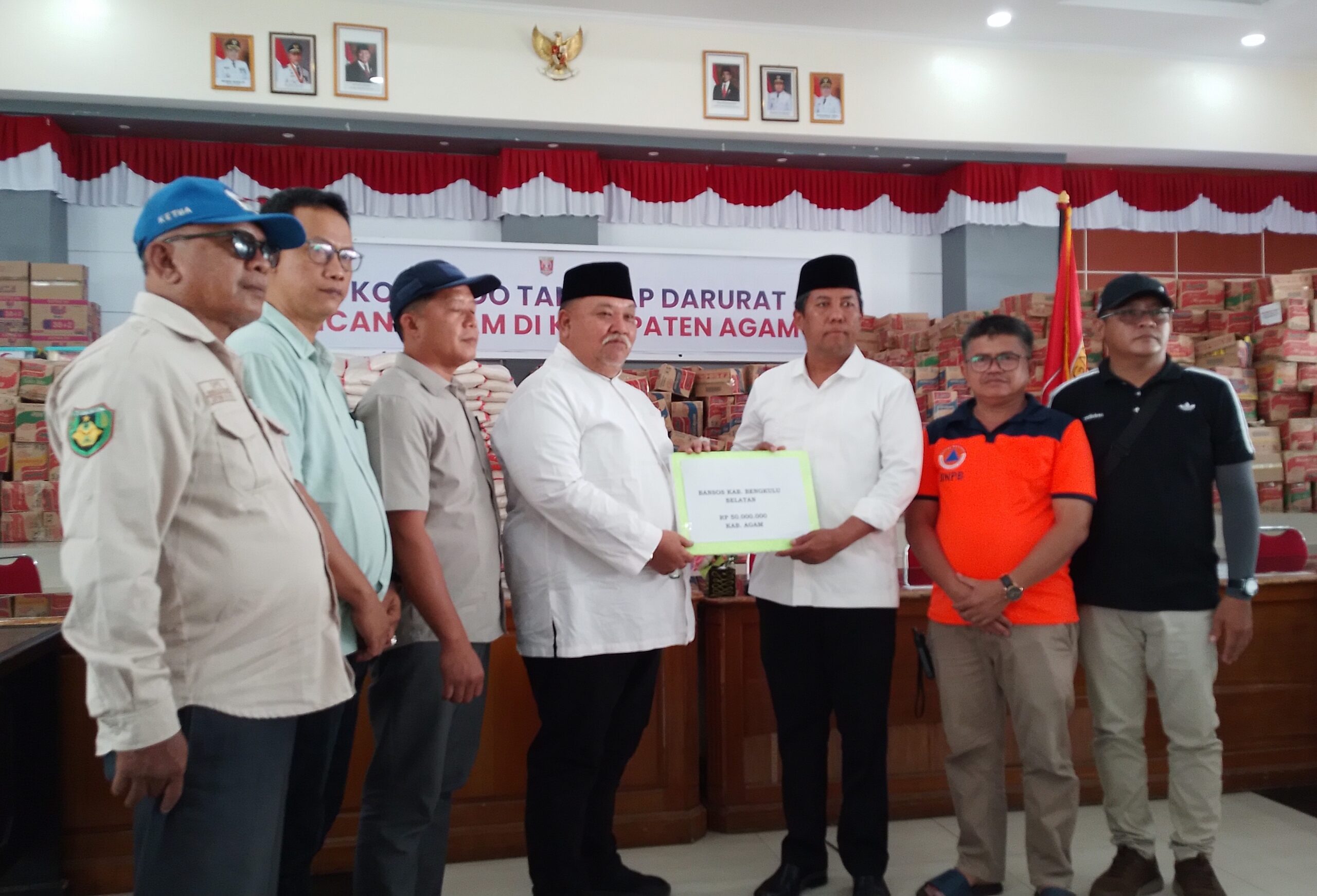 Sementara, Sekda Agam Dr. M. Lutfi AR, SH,.M.Si mengucapkan terimakasih kepada Bupati Bengkulu Selatan bersama jajaran dan masyarakat yang sudah perhatian terhadap bencana yang melanda Kabupaten Agam.