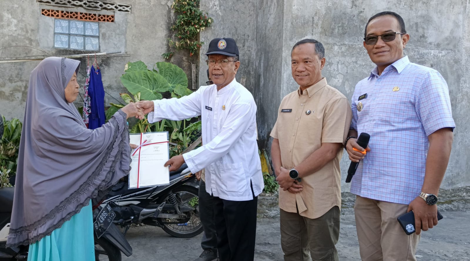 Bukittinggi, LINTASTIGA- Pemerintah Kota Bukittinggi bersama Kantor Pertanahan (BPN) Kota Bukittinggi menyerahkan sertipikat tanah pengganti kepada korban kebakaran yang terjadi di kelurahan Birugo. Sertipikat itu diserahkan oleh Wali Kota Bukittinggi diwakili Staf Ahli Bidang Pemerintahan, Hukum dan Politik, Emil Achir, Jumat (14/11).