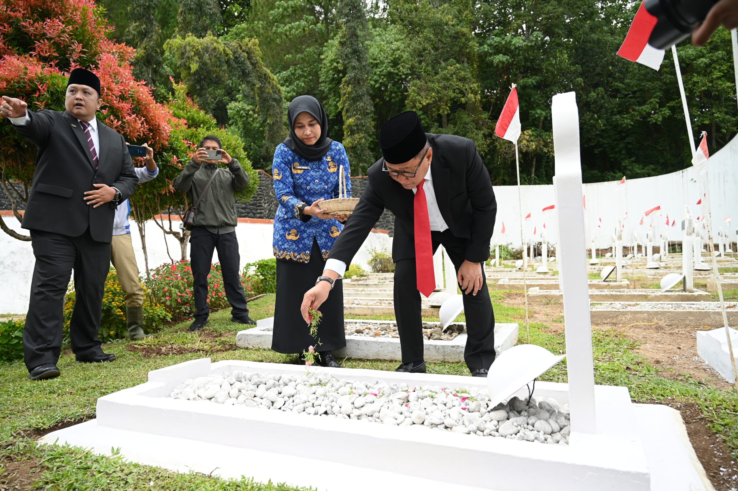Usai upacara bendera, Wali Kota Bukittinggi bersama Forkopimda melaksanakan upacara ziarah nasional dan tabur bunga di Taman Makam Pahlawan Kusuma Bhakti. Kegiatan ini menjadi bentuk penghormatan dan doa bagi para pahlawan yang telah gugur membela bangsa dan negara, sekaligus pengingat bagi generasi penerus untuk terus menumbuhkan semangat kepahlawanan dalam kehidupan berbangsa dan bernegara.