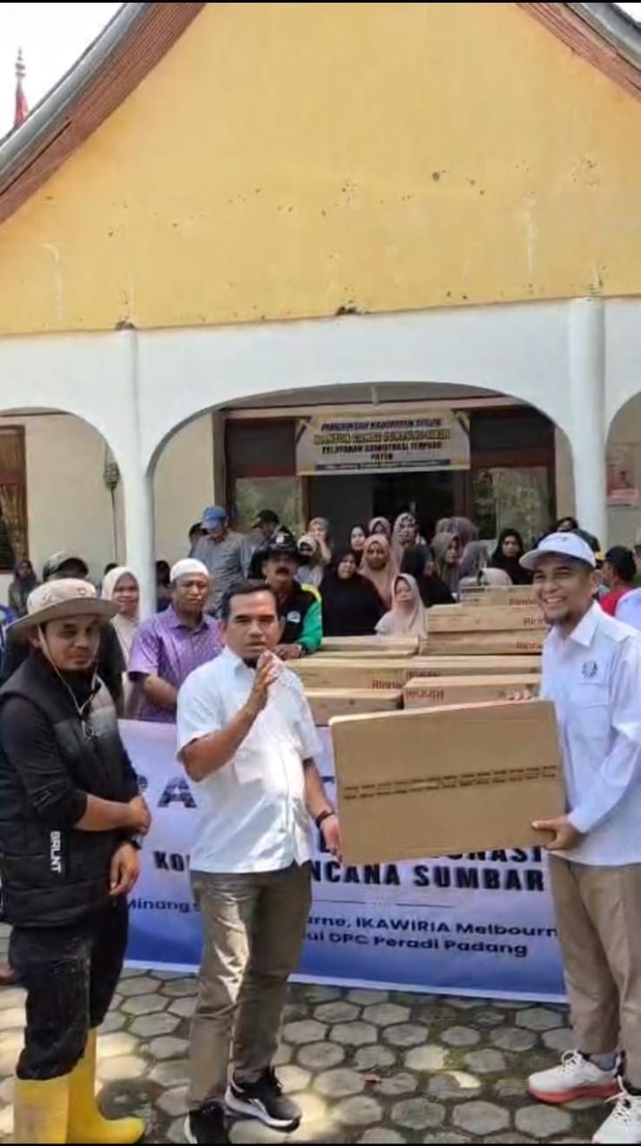 1. Junjung Sirih, lintastiga.com – Sebagai wujud kepedulian dan tanggung jawab sosial, Perhimpunan Advokat Indonesia (PERADI) DPC Padang mewakili PERADI Pusat, menyalurkan bantuan kemanusiaan kepada masyarakat terdampak bencana di Kabupaten Solok. Penyerahan bantuan tersebut berlangsung pada Minggu (18/01/2026) di Kantor Camat Junjung Sirih.