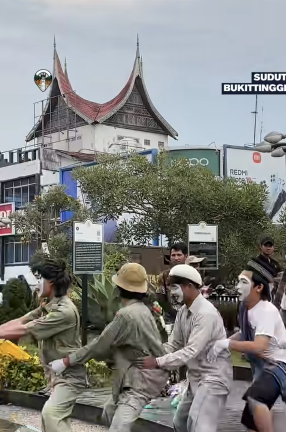 Bukittinggi, lintastiga.com- Komunitas seni pertunjukan Ramime (Ranah Mime) sukses menghibur ribuan pengunjung melalui penampilan street mime di kawasan Taman Pedestrian Jam Gadang, Minggu (19/4/2026).